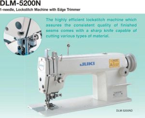 Máy JUKI DLM-5200Nmáy 1 kim công nghiệp có dao cắt mép, giúp may và cắt mép vải đồng thời, mang lại đường may phẳng, gọn, đẹptăng năng suất sản xuất.