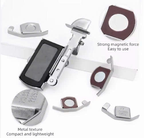 Gắn cữ nam châm lên mặt bàn kim loại của máy may, giúp giữ cho vải đi theo một đường thẳng, hạn chế bị lệch đường may.