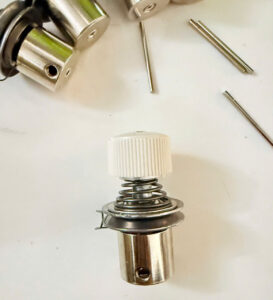Thiết kế của đồng tiền 1 kim mang phong cách hiện đại với sự kết hợp giữa kim loại cao cấp và núm vặn nhựa tiện dụng. Phần lò xo đàn hồi được gia công chuẩn xác, giúp điều chỉnh lực căng chỉ mượt mà, không bị giật, không gây đứt chỉ khi vận hành ở tốc độ cao. Đây là yếu tố cực kỳ quan trọng trong sản xuất hàng loạt, nơi mà mỗi giây đều ảnh hưởng đến năng suất